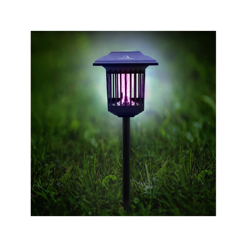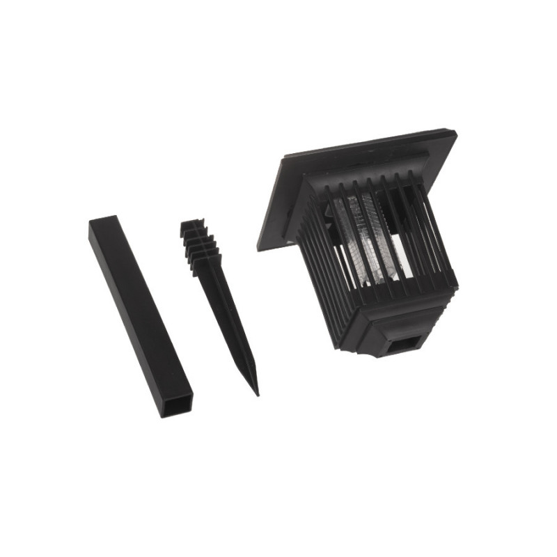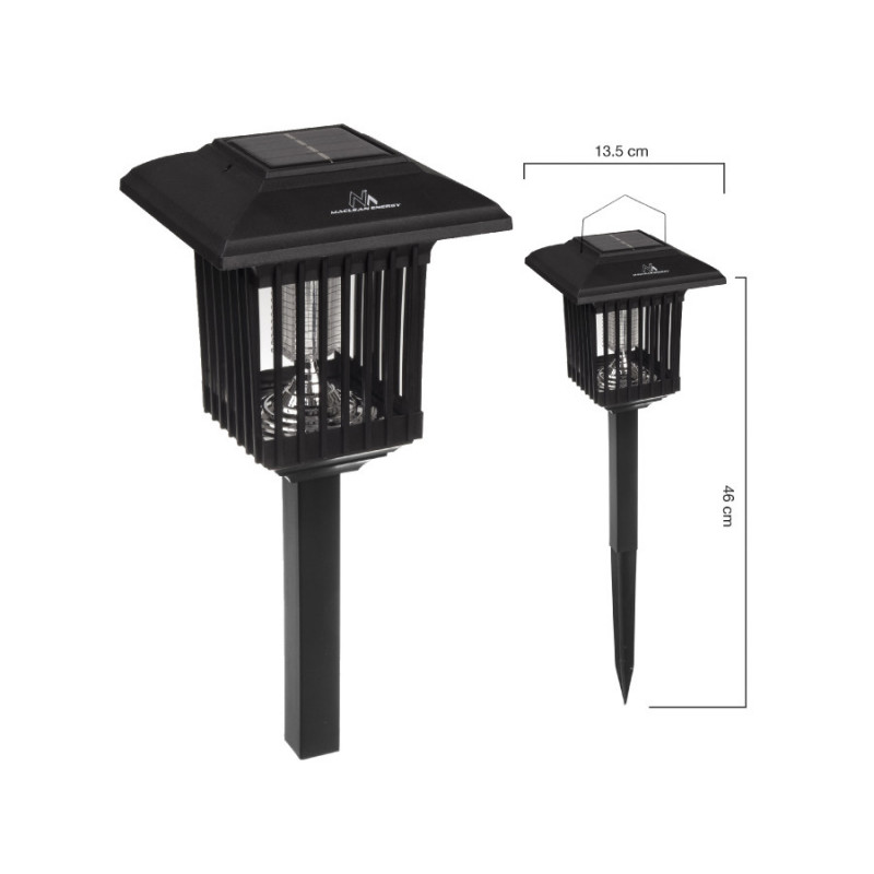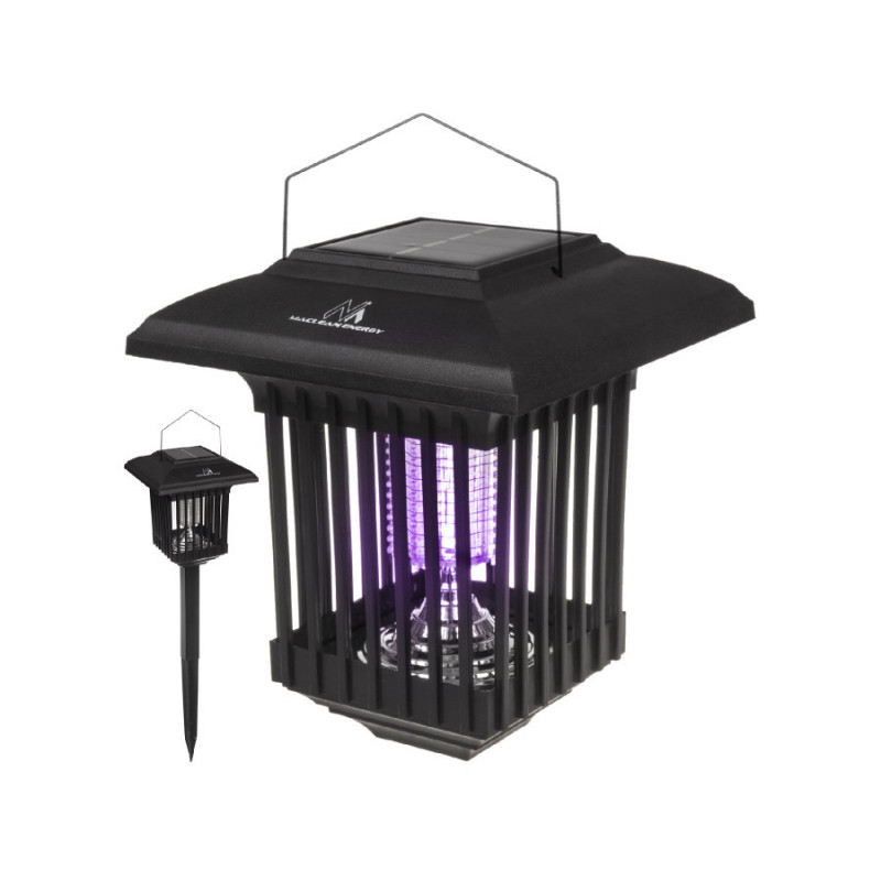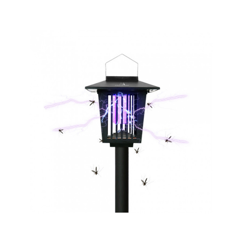 Sposób działania: lampa wabi owady przy pomocy bezpiecznego dla ludzi światła fioletowego LED/UV, po czym siateczka otaczającą źródło światła razi je prądem.