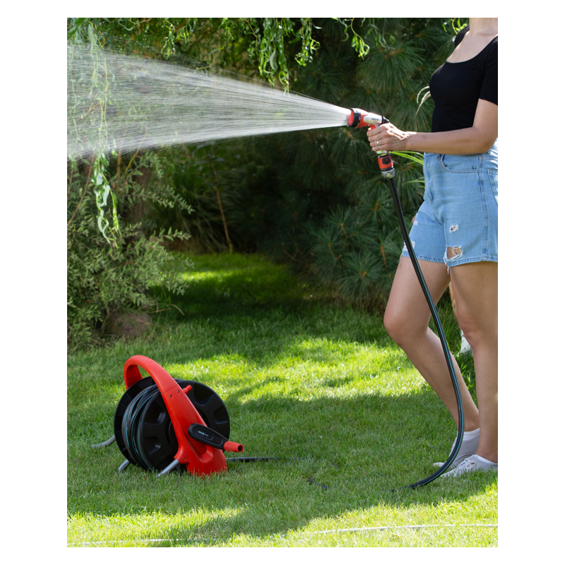 Stojak i nosidło są przystosowane do przechowywania węży ogrodowych o dwóch różnych średnicach: 3/4 cala (19 mm) oraz 1/2 cala (12,5 mm). Dzięki praktycznemu zwijaczowi, wąż ogrodowy można łatwo zwinąć i przechowywać, oszczędzając miejsce i utrzymując porządek w ogrodzie.