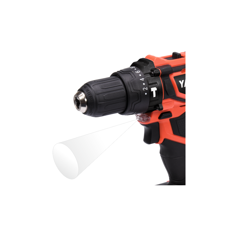 Wiertarko-wkrętarka została wyposażona w ergonomiczną rękojeść z gumowanym uchwytem, co gwarantuje pewny chwyt i redukuje zmęczenie podczas pracy. Wbudowana lampka LED ułatwia pracę w miejscach słabo oświetlonych, a hamulec wrzeciona umożliwia szybką i bezpieczną wymianę wiertła.
