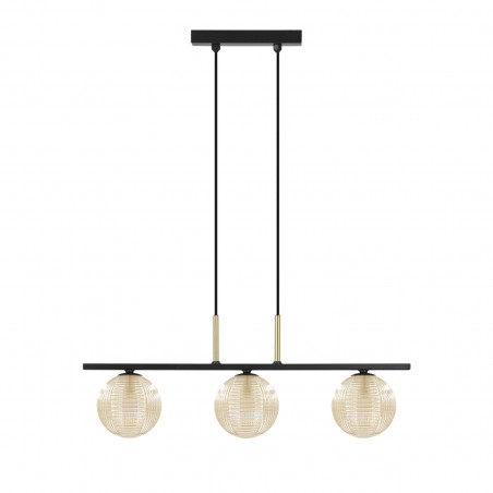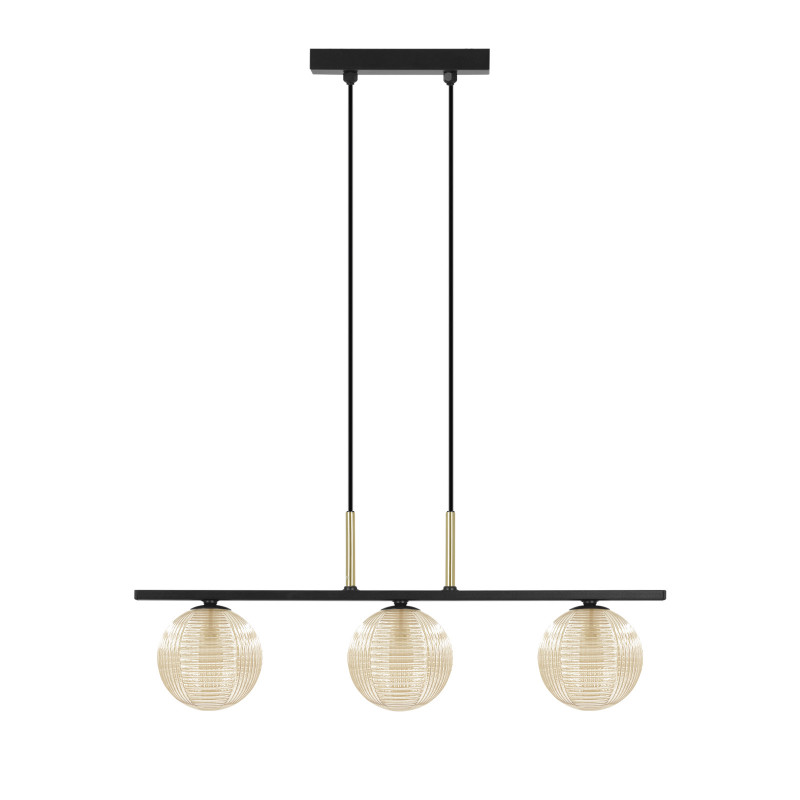 Lampa sufitowa GIRO K-5687 to połączenie subtelnego designu i luksusowego wykończenia. Czarna, metalowa konstrukcja oraz bursztynowe, szklane klosze tworzą efektowną całość, która doskonale sprawdzi się nad stołem w jadalni lub w centralnej części salonu. Ryflowane szkło nadaje lampie lekkości i nowoczesnego charakteru, a złote detale podkreślają jej styl glamour. Model ten świetnie prezentuje się we wnętrzach urządzonych w stylu nowoczesnym, loftowym lub klasycznym.