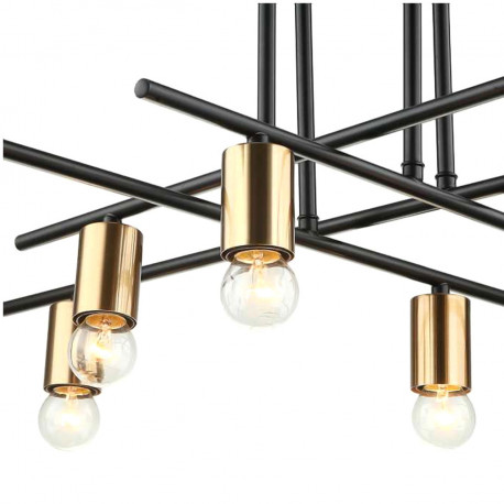 Nietuzinkowe elementy aranżacyjne, harmonia oraz wyobraźnia to przepis na dyskretne nowoczesne wnętrze.Te niebywale proste, a zarazem przykuwające wzrok lampy staną się jednocześnie centralnym punktem wystroju, jak i funkcjonalnym dopełnieniem nowoczesnych aranżacji. Lampa posiada 6 gniazda E27 (duży gwint) max 60W, jest to wymienne źródło światła które nie sprawi żadnych problemów. Istnieje możliwość zastosowania źródła światła LED które pozwoli zaoszczędzić do 90% energii elektrycznej.