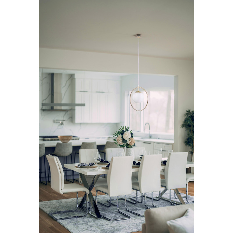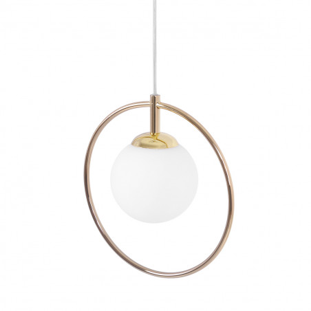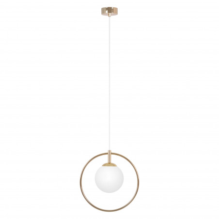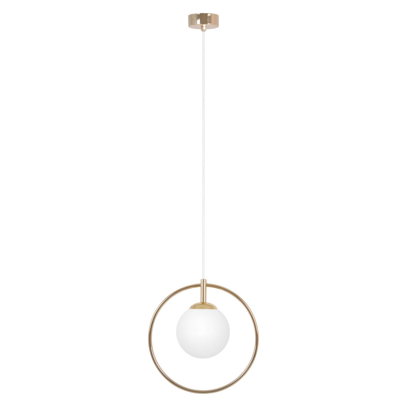 Lampa wisząca K-5390 z serii RITUS to propozycja dla osób ceniących minimalistyczny design i eleganckie detale. Złota obręcz i geometryczna forma nadają jej unikalnego stylu, który idealnie współgra z nowoczesnymi aranżacjami. Świetnie sprawdzi się zarówno w salonie, jadalni, jak i w domowym biurze, wprowadzając do wnętrza element dekoracyjny i funkcjonalny zarazem.