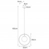 Dzięki regulowanej długości do 100 cm, lampa może być łatwo dopasowana do wysokości pomieszczenia i potrzeb użytkownika. Jej szerokość 30 cm oraz smukły klosz o średnicy 14 cm czynią ją doskonałym rozwiązaniem także do mniejszych przestrzeni. Lampa subtelnie przyciąga wzrok, nie dominując wnętrza.