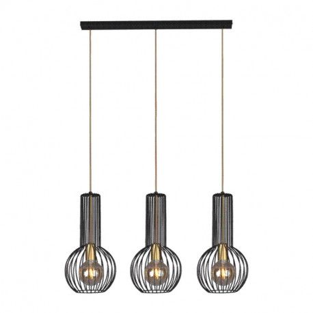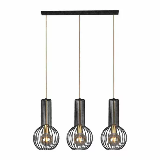 Lampa wisząca to oprawa z designerskiej serii ARVI. Lampy z tej serii to wykonane z metalu klosze w formie kraty i odsłoniętą żarówką zawieszone na długich przewodach. Długość zawieszenia podlega regulacji. Na tej aukcji oferujemy lampę w kolorze czarno złotym. Absolutna nowość i hit wśród projektantów. Polecamy zastosowanie dekoracyjnych żarówek LED, które idealnie sprawdzą się w tego typu lampach (brak źródła światła w zestawie). Blask wydobywający się spomiędzy drutów tworzy niepodrabialny klimat. Złote elementy kontrastują z głęboką czernią, nadając wiszącej konstrukcji wyjątkowy charakter. Prostota budowy czyni lampę niezwykle uniwersalną.