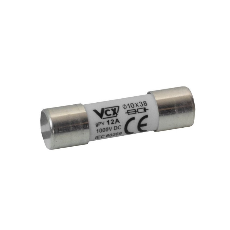 Wkładka cylindryczna fotowoltaiczna DC 20A gPV 10x38mm VCX to niezwykle istotny element zabezpieczający, przeznaczony do ochrony instalacji fotowoltaicznych oraz niskonapięciowych instalacji prądu stałego. Jej podstawowym celem jest zapewnienie bezpieczeństwa w systemach energetycznych, które są coraz powszechniej wykorzystywane w różnych aplikacjach, od domowych instalacji solarnych po większe systemy przemysłowe. Ten bezpiecznik topikowy o wymiarach 10×38 mm charakteryzuje się prądem znamionowym wynoszącym 20A i napięciem 1000V DC. Warto zauważyć, że wkładka spełnia normy IEC60269, co stanowi gwarancję jej wysokiej jakości oraz niezawodności w trudnych warunkach pracy.