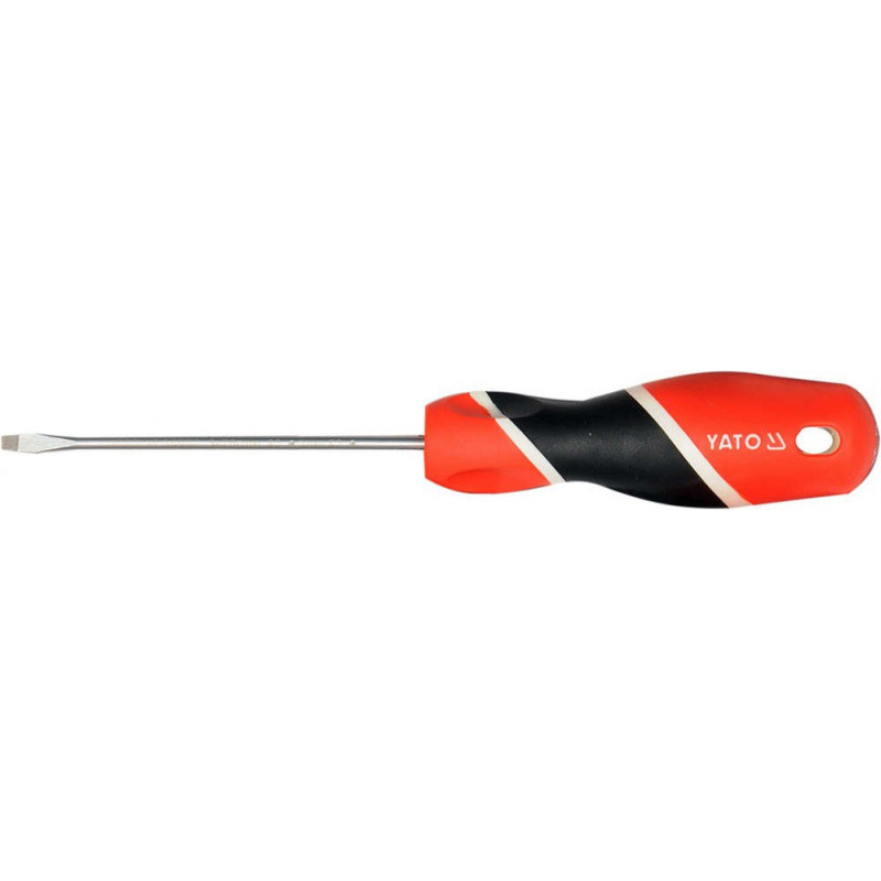 Wkrętak płaski.Trzpień walcowy, wykonany ze stali o symbolu S2, utwardzany do około 58 HRC. Powierzchnia trzpienia satynowana, końcówka robocza utwardzana i piaskowana / wzmacnia to stabilność grota. Rękojeść wykonana z odpowiednio dobranych tworzyw o różnych twardościach.