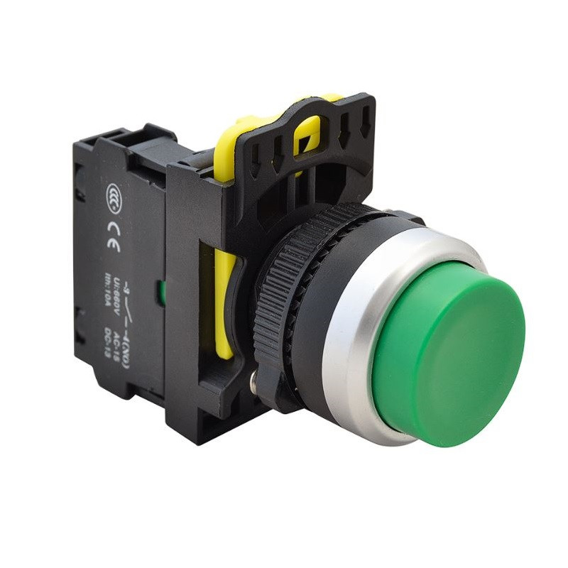 Przycisk wystający NYG3-HG TRACON to wszechstronne rozwiązanie sterujące, które łączy w sobie funkcjonalność oraz trwałość, idealne do zastosowań w różnych środowiskach przemysłowych i technicznych. Jego konstrukcja i parametry techniczne czynią go praktycznym wyborem dla wielu aplikacji, gdzie niezawodność i wytrzymałość są kluczowe. Jego wystająca forma ułatwia łatwe lokalizowanie i naciśnięcie, nawet w trudnych warunkach lub w przypadku użytkowników noszących rękawice. Zielony kolor przycisku zapewnia wyraźne oznaczenie i przyciąga uwagę, co może być szczególnie ważne w sytuacjach wymagających szybkiego reagowania lub sygnalizacji awaryjnej. Jego średnica otworu wynosząca 22 mm jest standardowa, co umożliwia łatwy montaż w większości paneli sterowniczych i instalacji.