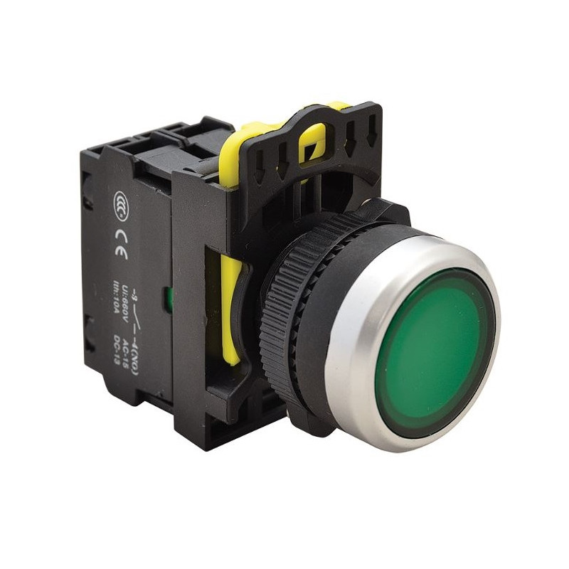 Jednym z kluczowych atutów tego przycisku jest podświetlenie, które zwiększa widoczność w ciemniejszych warunkach i poprawia ergonomię użytkowania. Zielony kolor przycisku nie tylko pełni funkcję sygnalizacyjną, ale również przyciąga uwagę, co jest istotne w aplikacjach wymagających wyraźnego oznaczenia lub ostrzeżenia. Samopowrotna funkcja przycisku zapewnia, że po naciśnięciu wraca on automatycznie do pierwotnej pozycji, co jest użyteczne w wielu aplikacjach wymagających czasowego aktywowania funkcji.