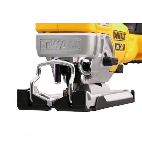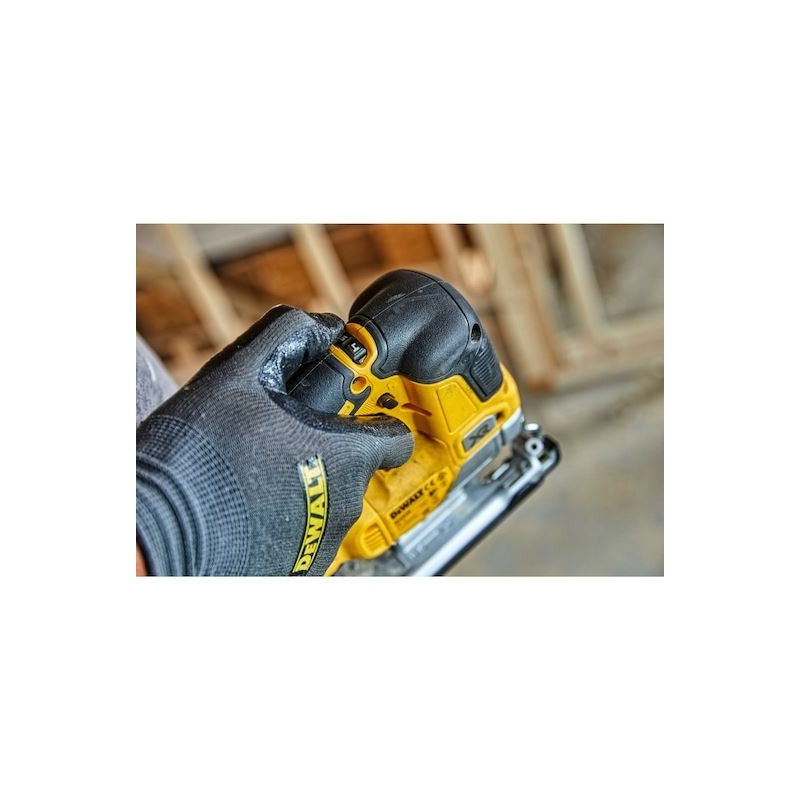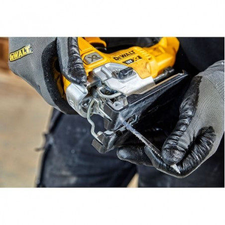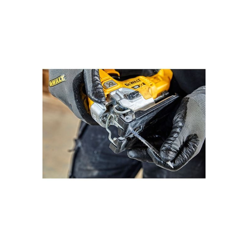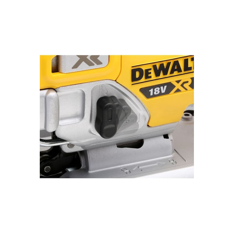 Model DCS334N oferuje elektroniczną regulację prędkości (0–3200 suwów/min) oraz czterostopniową funkcję podcinania, dzięki czemu można dopasować sposób pracy do materiału i oczekiwanego efektu. Beznarzędziowy mechanizm wymiany brzeszczotów typu T zwiększa komfort i szybkość pracy, utrzymując ostrze w optymalnej pozycji.