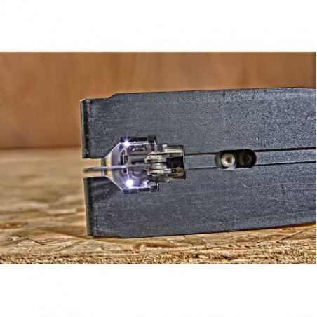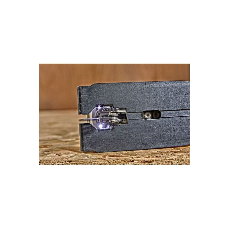 Dla wygody użytkownika zastosowano miękką, ogumowaną rękojeść, a przednia część obudowy skutecznie ogranicza wibracje. Narzędzie zostało wyposażone w dmuchawę usuwającą pył oraz diodę LED, która automatycznie oświetla pole pracy, zapewniając pełną widoczność linii cięcia nawet w trudnych warunkach.