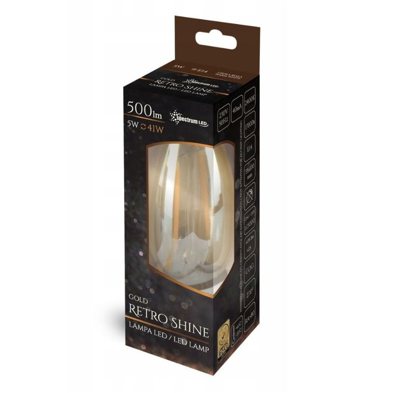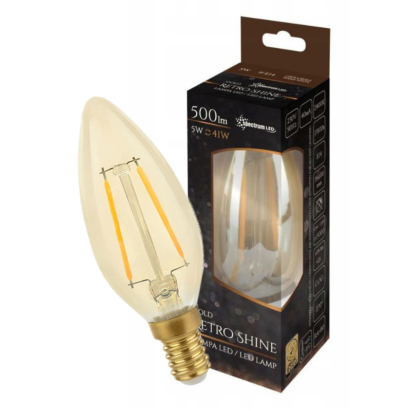 Źródło LED ŚWIECZKA 5W o trzonku E14 oraz o kształcie świeczki. Unikalny wygląd dekoracyjnej serii MODERNSHINE, daje efekt ciepłego klimatycznego światła, tworząc przyjemną atmosferę i nastrojowe oświetlenie. Charakteryzuje się wysoką skutecznością świetlną 100lm/W. Jest jeszcze bardziej energooszczędne dzięki zastosowaniu trwałych filamentów COG, które zużywają bardzo mało energii elektrycznej. Szeroki kąt świecenia 300° zapewnia równomierne oświetlenie pomieszczeń.