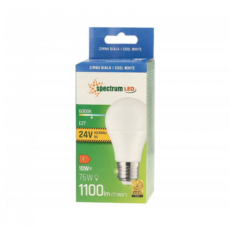 Żarówka LED GLS E27 24V 10W barwa zimna CW od Spectrum LED to nowoczesne rozwiązanie oświetleniowe, które wyróżnia się zarówno oszczędnością energii, jak i długowiecznością. Wybór tej żarówki oznacza nie tylko obniżenie rachunków za prąd, ale także zapewnienie sobie wysokiej jakości oświetlenia w różnych zastosowaniach. Dzięki swoim właściwościom, żarówka ta znajduje zastosowanie zarówno w pomieszczeniach domowych, jak i w zastosowaniach profesjonalnych oraz zewnętrznych. Żarówka LED o mocy 10 W jest odpowiednikiem tradycyjnej żarówki o mocy 76 W, co oznacza, że jest o wiele bardziej energooszczędna. Dzięki zastosowanej technologii LED, zużywa do 95% mniej energii w porównaniu z tradycyjnymi źródłami światła. Przekłada się to na znaczną oszczędność na rachunkach za energię elektryczną, a także na mniejsze obciążenie dla środowiska naturalnego.