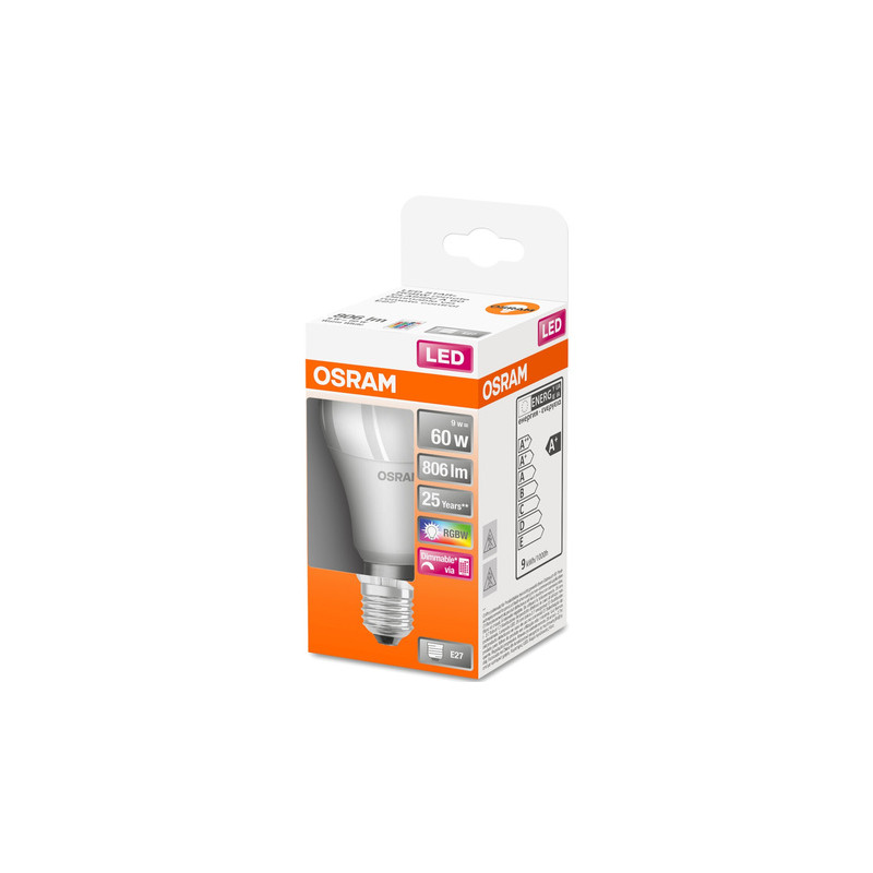 Żarówka LED RGBW E27 9W marki Osram z serii Star to nowoczesne i funkcjonalne rozwiązanie, które wzbogaci każde wnętrze swoją wyjątkową funkcjonalnością i dekoracyjnym charakterem. Dzięki zastosowaniu najnowszych technologii diod LED, ta żarówka łączy wysoką wydajność świetlną z niezwykle długą trwałością, oferując nie tylko oszczędność energii, ale także dużą wszechstronność w aranżacji oświetleniowej. Wykonana z tworzywa sztucznego żarówka z mlecznym kloszem doskonale rozprasza światło, eliminując oślepiające efekty i zapewniając równomierne oświetlenie. Tradycyjny kształt bańki (A60) z trzonkiem E27 umożliwia łatwą wymianę i instalację w standardowych oprawach. Dzięki temu, nawet osoby mniej obeznane z technologią, mogą bez problemu zaktualizować swoje źródło światła.