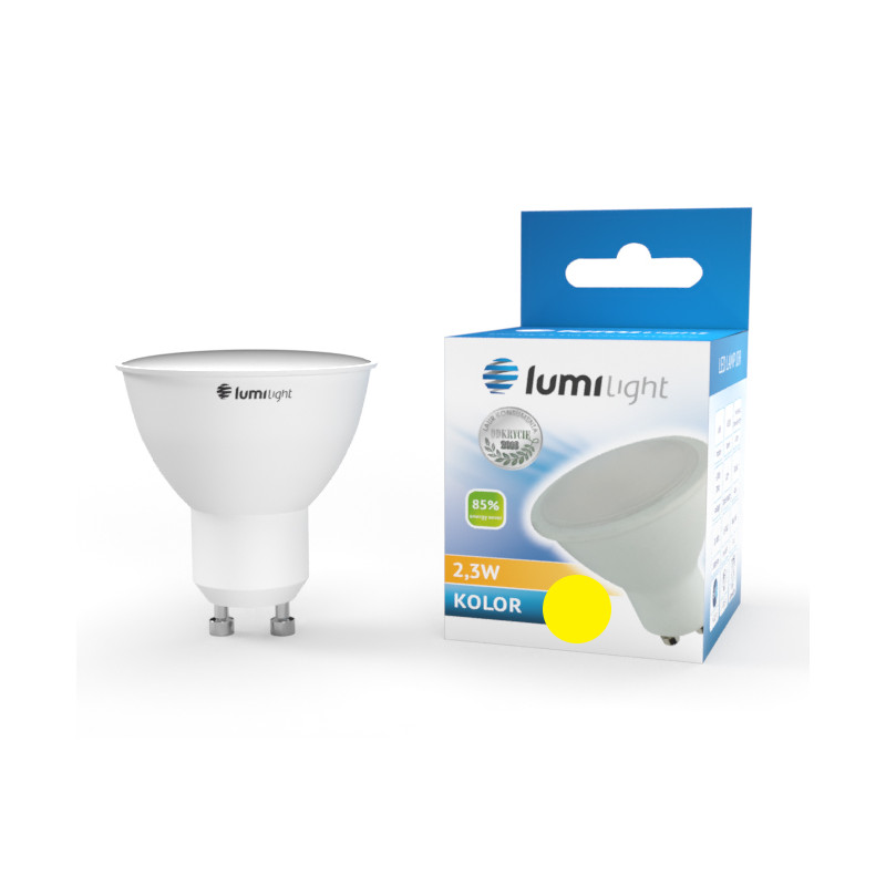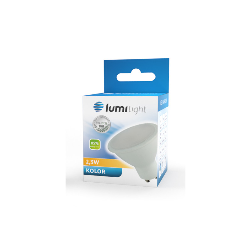 Źródło światła LED 2,3W o trzonku GU10 oraz o kształcie reflektora. Charakteryzuje się wysoką skutecznością świetlną. Jest jeszcze bardziej energooszczędne dzięki zastosowaniu trwałych diod LED, które zużywają bardzo mało energii elektrycznej.