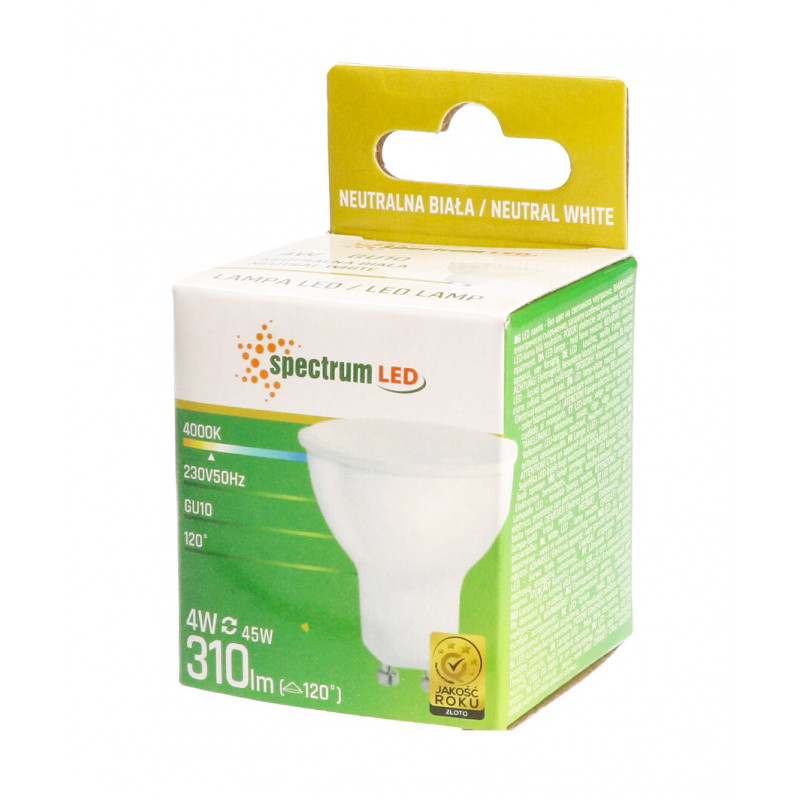 Żarówka SPECTRUM LED charakteryzuje się mocą 4W co odpowiada około 45W tradycyjnego źródła światła. Dany model to ciepła barwa neutralna oraz mleczny klosz. Solidna konstrukcja sprawia iż może być stosowana również na zewnątrz.
