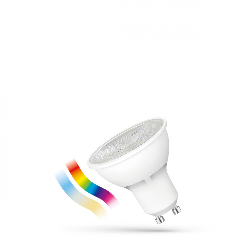 LED GU10 4,5W 50° SPECTRUM SMART to inteligentna żarówka LED o trzonku GU10, która oferuje szeroki zakres funkcji, sprawiając, że jest doskonałym wyborem dla każdego, kto ceni nowoczesne rozwiązania technologiczne oraz komfort użytkowania. Ta inteligentna żarówka smart charakteryzuje się możliwością zmiany koloru światła (RGB), co pozwala na dostosowanie atmosfery pomieszczenia do różnych okazji i nastrojów. Dzięki funkcji zmiany temperatury barwowej światła (CCT) można płynnie przechodzić od ciepłej bieli (2700K), idealnej do relaksu, do zimnej bieli (6000K), która sprzyja koncentracji i skupieniu.