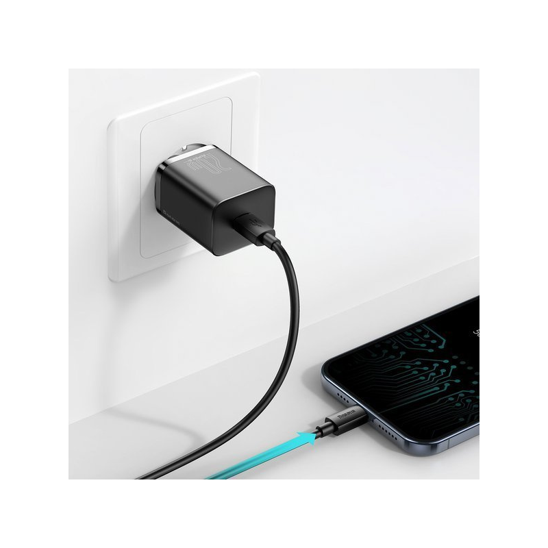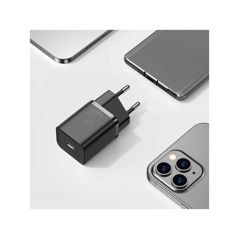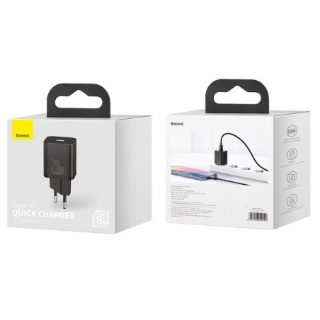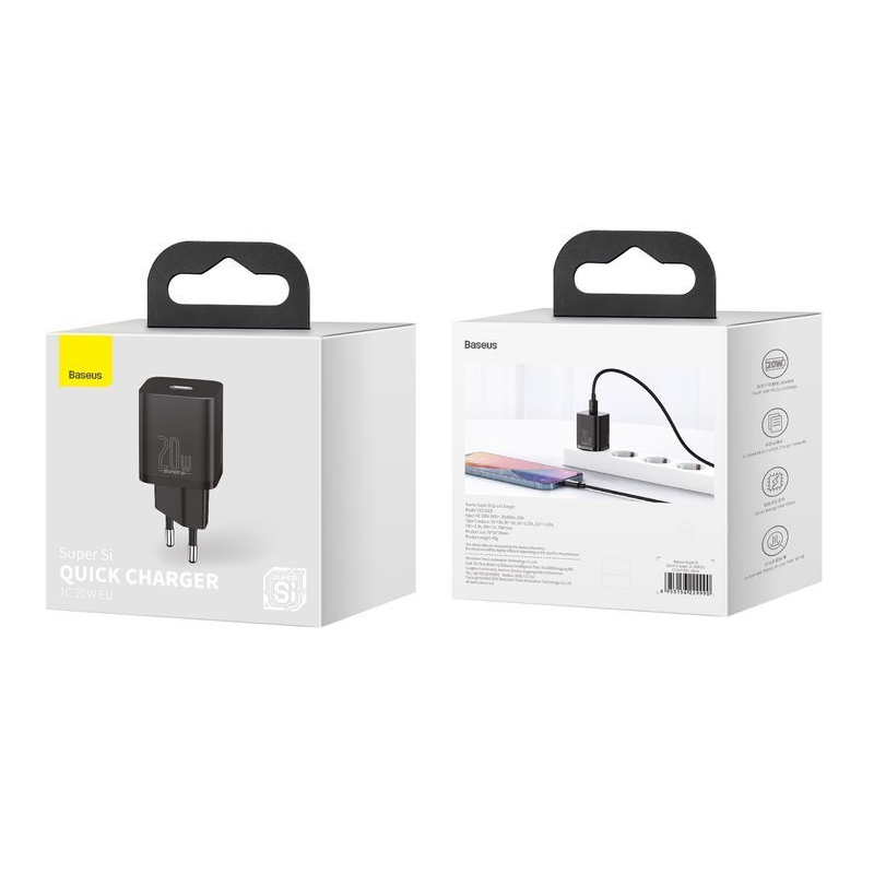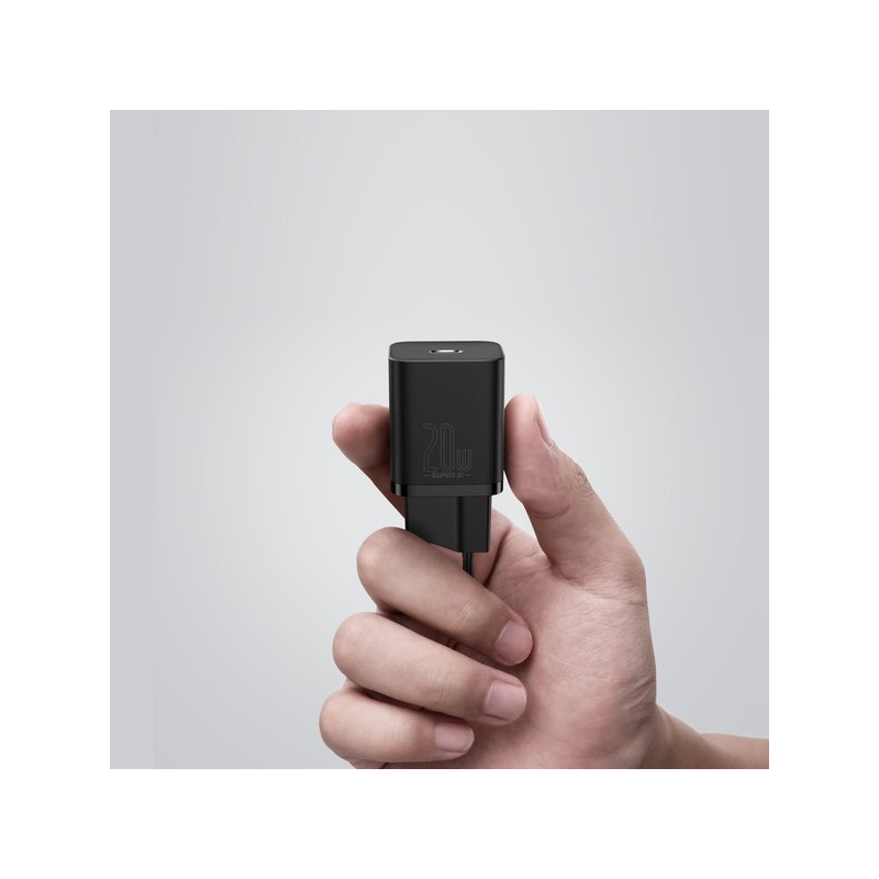 Baseus Super Si to kompaktowa i ultralekka ładowarka sieciowa z portem USB-C, oferująca 20W mocy i trzykrotnie szybsze ładowanie niż standardowe ładowarki 5V/1A. Dzięki technologii Super Si zapewnia wysoką wydajność w niewielkim rozmiarze – zmieści się w kieszeni, torbie lub plecaku, idealna do domu, pracy i podróży.