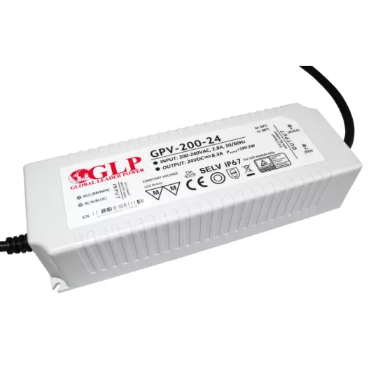 Zasilacz 24V 8,A 200W IP67 GPV-200-24 marki Global Leader Power to zaawansowane urządzenie przeznaczone do zasilania różnorodnych aplikacji wymagających niezawodnego i stabilnego źródła energii. Oferuje ono doskonałą funkcjonalność dzięki wodoszczelnej konstrukcji oraz wszechstronności w zastosowaniach przemysłowych i profesjonalnych.