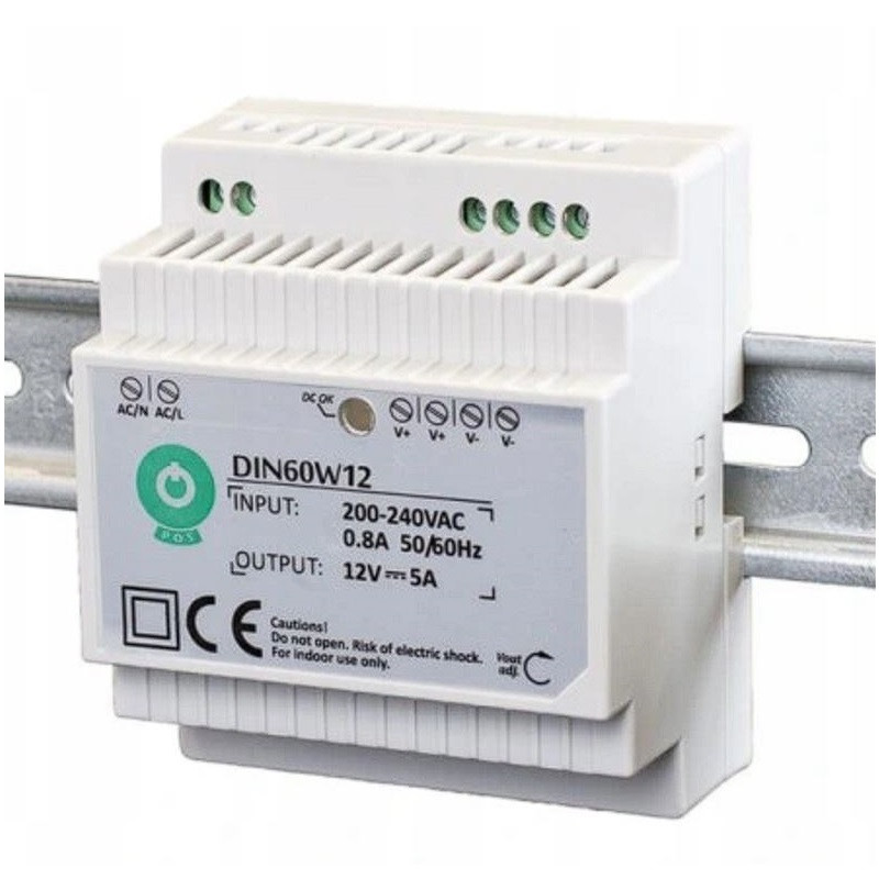 Zasilacz DIN 12V DC 5A 60W DIN60W12 POS to funkcjonalne i efektywne rozwiązanie zasilające, zaprojektowane z myślą o różnych zastosowaniach, zwłaszcza w kontekście oświetlenia LED w instalacjach domowych. Jego konstrukcja i specyfikacje czynią go praktycznym wyborem dla użytkowników poszukujących niezawodnego źródła zasilania o wysokiej jakości i korzystnej cenie. Jednym z kluczowych atutów zasilacza DIN60W12 jest jego kompaktowa budowa, która pozwala na łatwe wkomponowanie go w różne instalacje. Z wymiarami 78 x 93 x 56 mm, zasilacz jest wystarczająco mały, by zmieścić się w wąskich przestrzeniach, a zarazem wystarczająco mocny, aby sprostać wymaganiom wielu aplikacji.