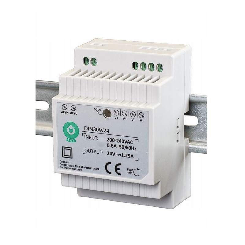 Zasilacz DIN 24V DC 1,25A 30W DIN30W24 marki POS to kompaktowe i funkcjonalne urządzenie, które zapewnia niezawodne źródło zasilania dla różnych aplikacji, w tym dla domowego oświetlenia LED. Jego projekt i specyfikacje sprawiają, że jest idealnym wyborem dla instalacji wymagających efektywnego i stabilnego źródła energii. Zasilacz DIN30W24 charakteryzuje się mocą 30W, co zapewnia wystarczającą moc do zasilania urządzeń wymagających napięcia 24V i prądu 1,25A. To sprawia, że zasilacz jest odpowiedni do wielu zastosowań, w tym oświetlenia LED w domach, biurach czy innych przestrzeniach.