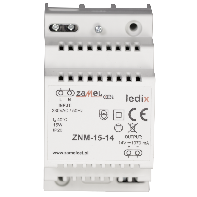 Zasilacz DIN LED 14V DC 15W ZNM-15-14 ZAMEL to zaawansowane urządzenie przeznaczone do stabilnego zasilania systemów LED. Jego kluczową cechą jest stabilizacja napięcia wyjściowego na poziomie 14 V DC, co czyni go idealnym do współpracy z produktami serii LEDIX. Zasilacz ten łączy w sobie nowoczesną technologię i niezawodność, oferując użytkownikom wyjątkową efektywność oraz długotrwałe działanie.