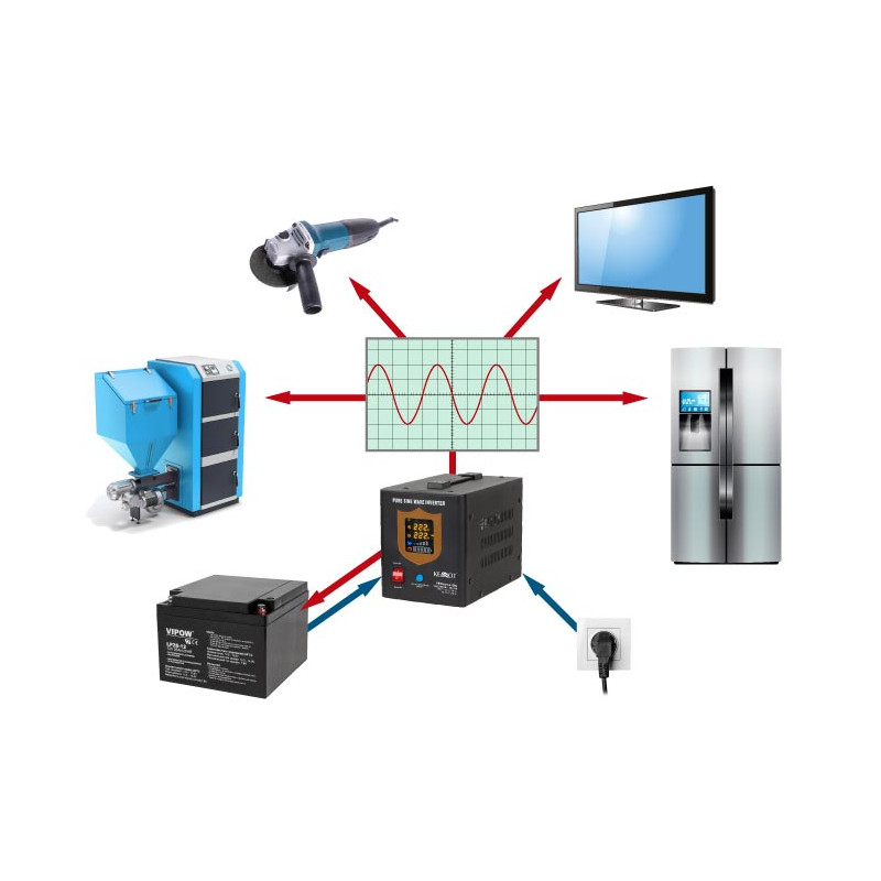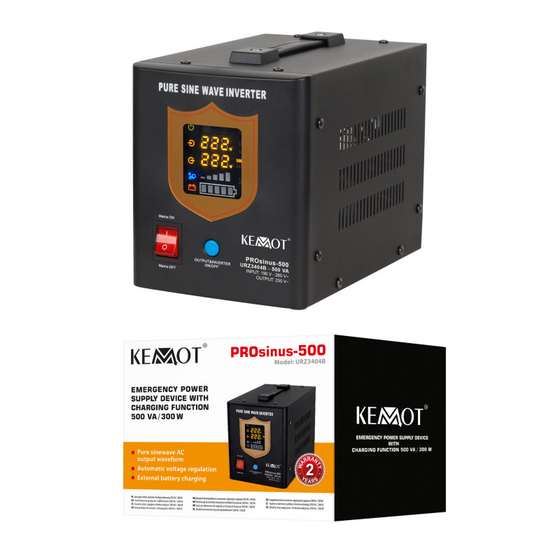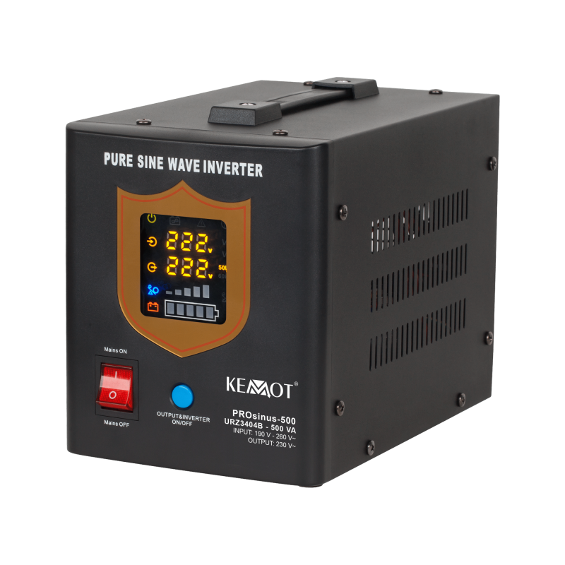 Seria urządzeń PROsinus marki KEMOT doskonale sprawdzi się jako awaryjne zasilanie pomp CO lub pomp w instalacjach kominków, a także silników indukcyjnych, czy np. urządzeń automatyki instalacji z wykorzystaniem konwektorów ciepła oraz wszelkich urządzeń wyjątkowo wrażliwych na najmniejsze zmiany kształtu napięcia. Ich zaletą jest czysty sinusoidalny przebieg napięcia wyjściowego (zasilającego odbiory), dzięki któremu urządzenie zapewnia stabilną pracę, zapobiegając efektowi przegrzewania się odbiorów indukcyjnych.
