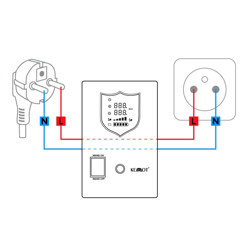 Zasilacz awaryjny KEMOT współpracuje z urządzeniami, które wyposażone są w detekcję fazy, jak np. niektóre modele pieców gazowych. Faza w naszym urządzeniu jest w stałym miejscu, bez względu na to, czy jest ono zasilane z gniazda sieciowego czy akumulatora.