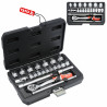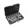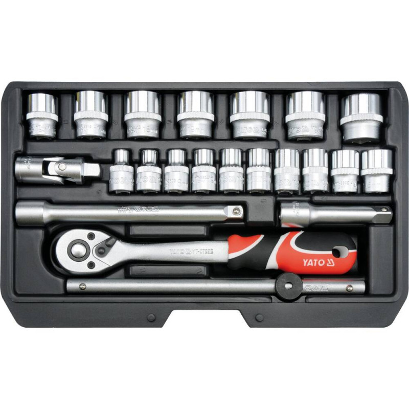 Zestaw YATO YT-38561 to wszechstronny zestaw kluczy nasadowych i akcesoriów, zaprojektowany z myślą o wymagających zadaniach serwisowych. W skład wchodzą nasadki, przedłużki, przegub Cardana, pokrętło typu "T" oraz grzechotka 3/8”. Dzięki solidnej konstrukcji zestaw sprawdzi się w pracy przy dużych obciążeniach.