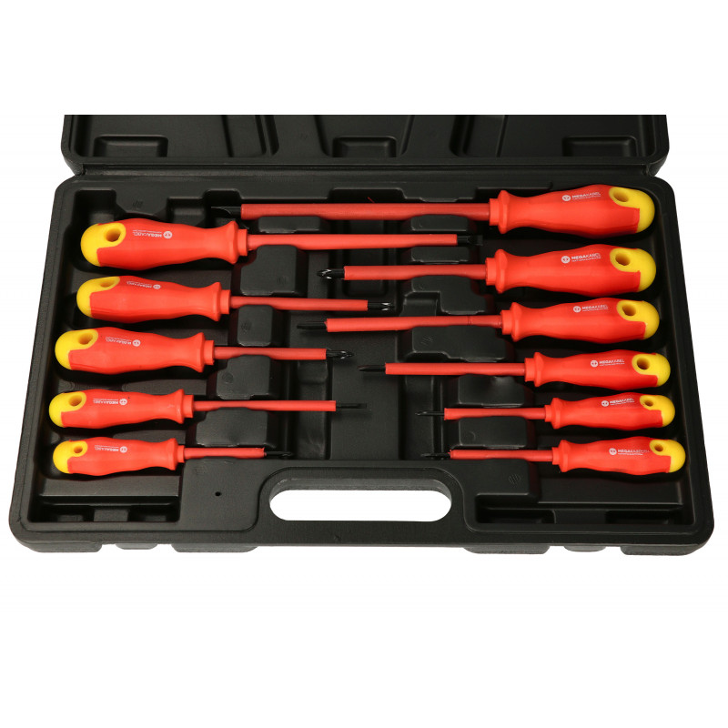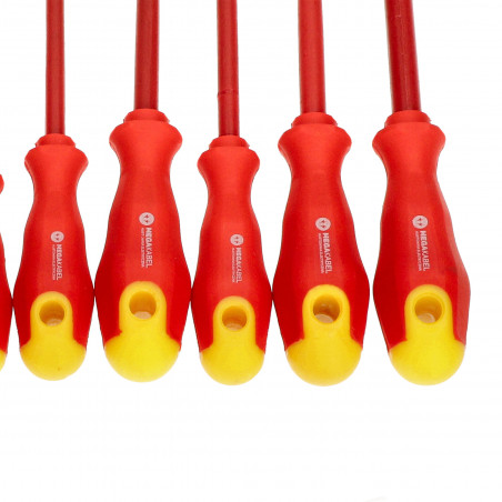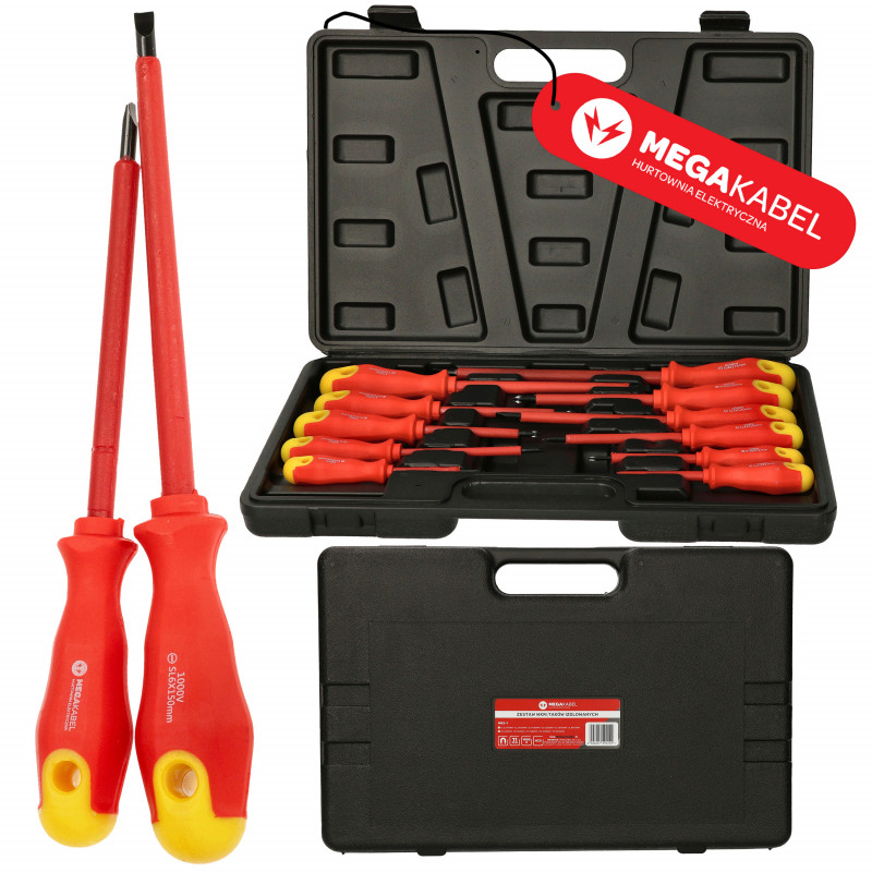Zestaw śrubokrętów izolowanych 1000V MEGAKABEL to idealny wybór dla elektryków i majsterkowiczów, którzy wymagają maksymalnego bezpieczeństwa. Dzięki certyfikowanej izolacji do 1000V śrubokręty spełniają normy VDE, gwarantując ochronę przy pracach instalacyjnych.