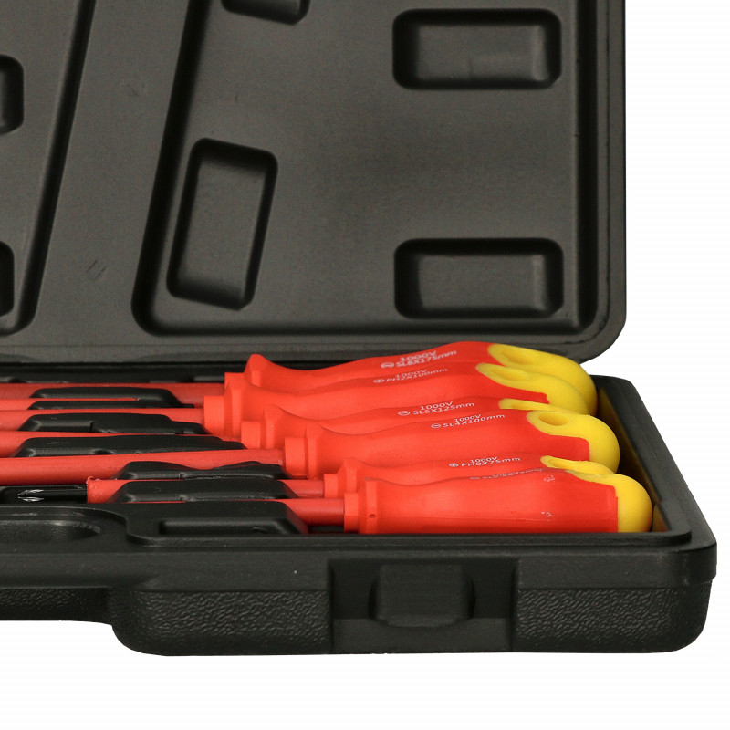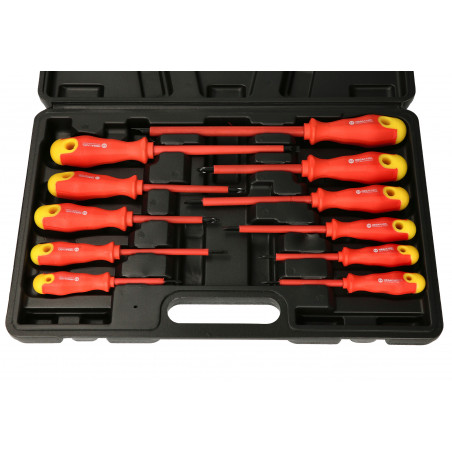 Zestaw zawiera 11 profesjonalnych śrubokrętów, w tym płaskie (SL) i krzyżowe (PH), które pokrywają szeroki zakres zastosowań. Solidna walizka ułatwia organizację i przechowywanie narzędzi, chroniąc je przed uszkodzeniami.