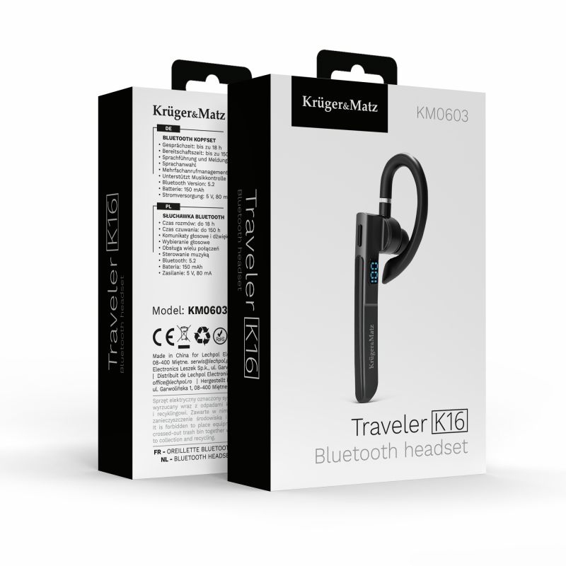 Poznaj Kruger&Matz Traveler K16 – nowoczesny zestaw słuchawkowy Bluetooth stworzony z myślą o tych, którzy żyją aktywnie i cenią swobodę. To coś więcej niż tylko słuchawka – to Twój niezawodny partner w codziennych wyzwaniach, pracy i podróży.