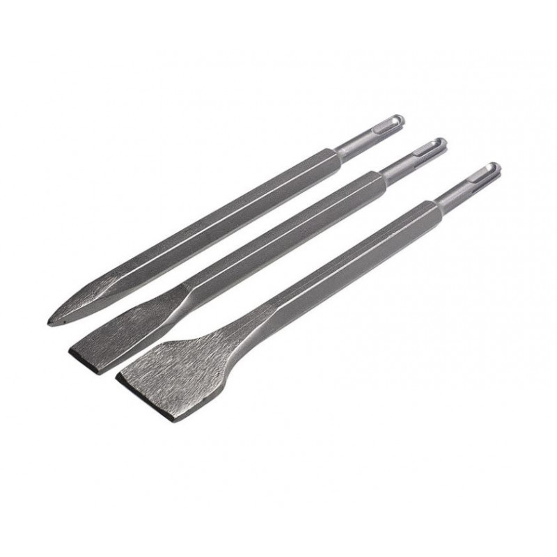 W skład zestawu wchodzą dwa dłuta z płaskim zakończeniem o różnych średnicach oraz dłuto ze szpicem, każde o imponującej długości 250 mm. Dzięki tej długości narzędzia zapewniają odpowiedni zasięg i możliwość precyzyjnego kucia i wyburzania, co jest kluczowe przy pracy na różnorodnych powierzchniach. Narzędzia wykonane są z wysokogatunkowej stali, co gwarantuje nie tylko wysoką wydajność w usuwaniu materiałów, ale także długotrwałą trwałość. Stal ta jest odporna na intensywne obciążenia i zapewnia efektywne wykonanie nawet najbardziej wymagających zadań. Uchwyty SDS-PLUS, do których są przystosowane dłuta, umożliwiają szybkie i bezpieczne mocowanie do wiertarek udarowych oraz młotów wyburzeniowych. Dzięki temu narzędzia te są gotowe do intensywnej pracy w różnorodnych warunkach budowlanych.