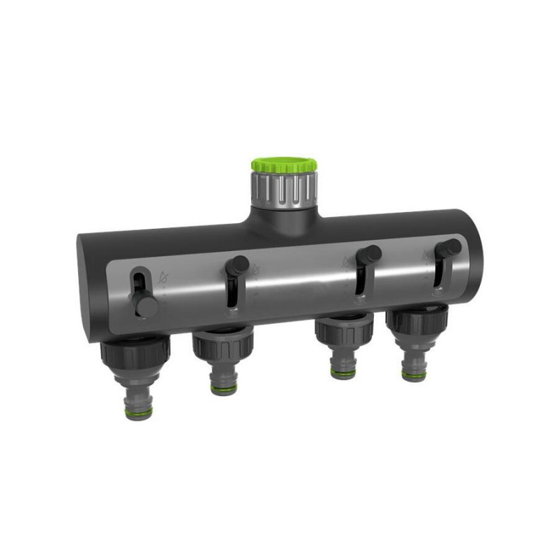 Rozdzielacz poczwórny EXP S101010275 STALCO to element armatury ogrodowej przeznaczony do rozgałęziania i łączenia węży. Jego główną funkcją jest umożliwienie podłączenia kilku węży do jednego kranu lub innego źródła wody, co znacząco zwiększa efektywność i wygodę nawadniania. Dzięki zastosowaniu szybkozłączek, proces podłączania i odłączania węży jest niezwykle prosty i szybki. Szybkozłączki zapewniają także szczelne połączenia, co minimalizuje ryzyko wycieków wody. Rozdzielacz ten znajduje szerokie zastosowanie w ogrodzie. Może być używany do podłączenia różnych narzędzi nawadniających, takich jak zraszacze, węże czy systemy kropelkowe. Dzięki czterem wyjściom, umożliwia jednoczesne nawadnianie kilku obszarów ogrodu, co znacząco przyspiesza i ułatwia prace ogrodowe. Jest to idealne rozwiązanie zarówno dla małych ogródków, jak i dużych powierzchni, gdzie efektywne zarządzanie wodą jest kluczowe.