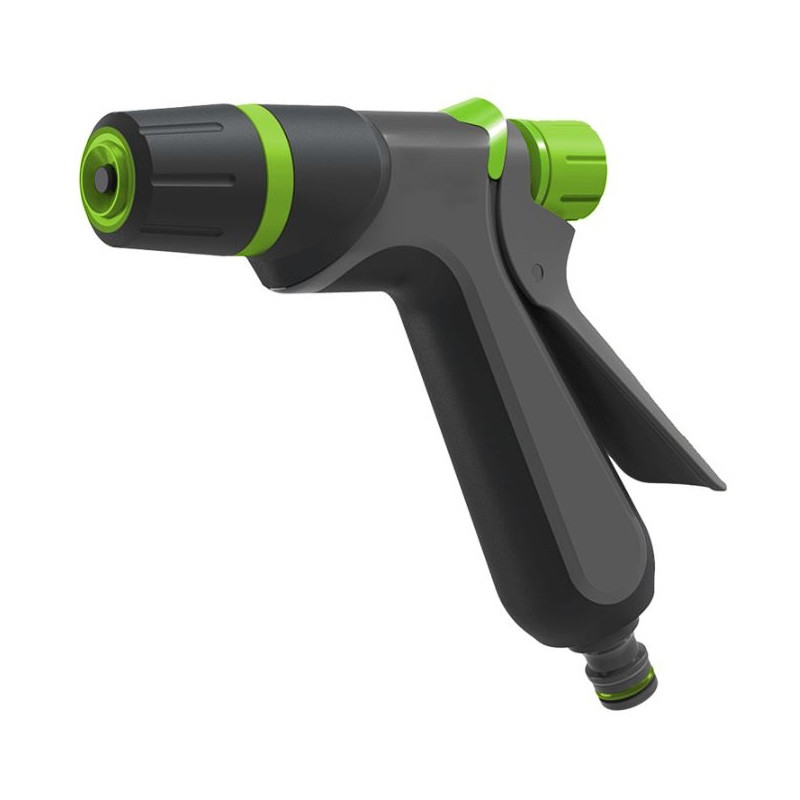 Regulacja strumienia zraszania to kolejna istotna cecha tego pistoletu. Użytkownicy mogą łatwo zmieniać strumień wody, dostosowując go do specyficznych potrzeb swojego ogrodu. Regulacja pozwala na przejście od prostego, skoncentrowanego strumienia idealnego do precyzyjnego podlewania, do rozproszonego zraszania, które doskonale nadaje się do nawadniania większych powierzchni, takich jak trawniki czy rabaty kwiatowe. Ta funkcjonalność sprawia, że pistolet jest niezwykle wszechstronny i może być używany w różnych sytuacjach, w zależności od wymagań roślin.