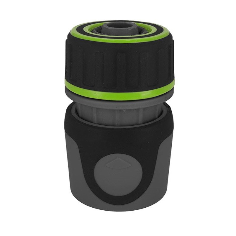 Najważniejszą cechą tego szybkozłącza jest jego funkcja STOP, która pozwala na szybkie i wygodne zmienianie urządzeń zraszających, takich jak dysze, pistolety czy zraszacze, bez konieczności zakręcania źródła wody. Dzięki funkcji STOP, użytkownik może wymieniać akcesoria ogrodowe bez przerywania przepływu wody, co jest szczególnie przydatne w przypadku dynamicznej pracy w ogrodzie, gdzie zmiana narzędzi nawadniających jest częsta. Szybkozłącze o rozmiarze 1/2” jest przeznaczone do standardowych węży ogrodowych i urządzeń nawadniających. Jego praktyczne zastosowanie ułatwia łączenie i odłączanie węży, co znacząco poprawia wygodę i efektywność pracy w ogrodzie. Dzięki temu elementowi, zarządzanie systemem nawadniającym staje się prostsze i bardziej komfortowe.